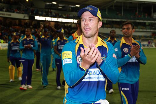 De Villiers still went at a decent lick, making 32 (22) including three fours and a six. He departed when he misjudged a pull off a Jerome Taylor slower ball and was well caught by Darren Sammy on the mid-wicket boundary.