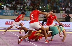With star raider Pardeep Narwal stranded on the bench, Patna Pirates struggled to impose themselves on the game. Dabang Delhi KC restricted their raiders to just three points in the first half. Dabang Delhi KC led 11-7 at the end of the first half as their defence was on top of their game.