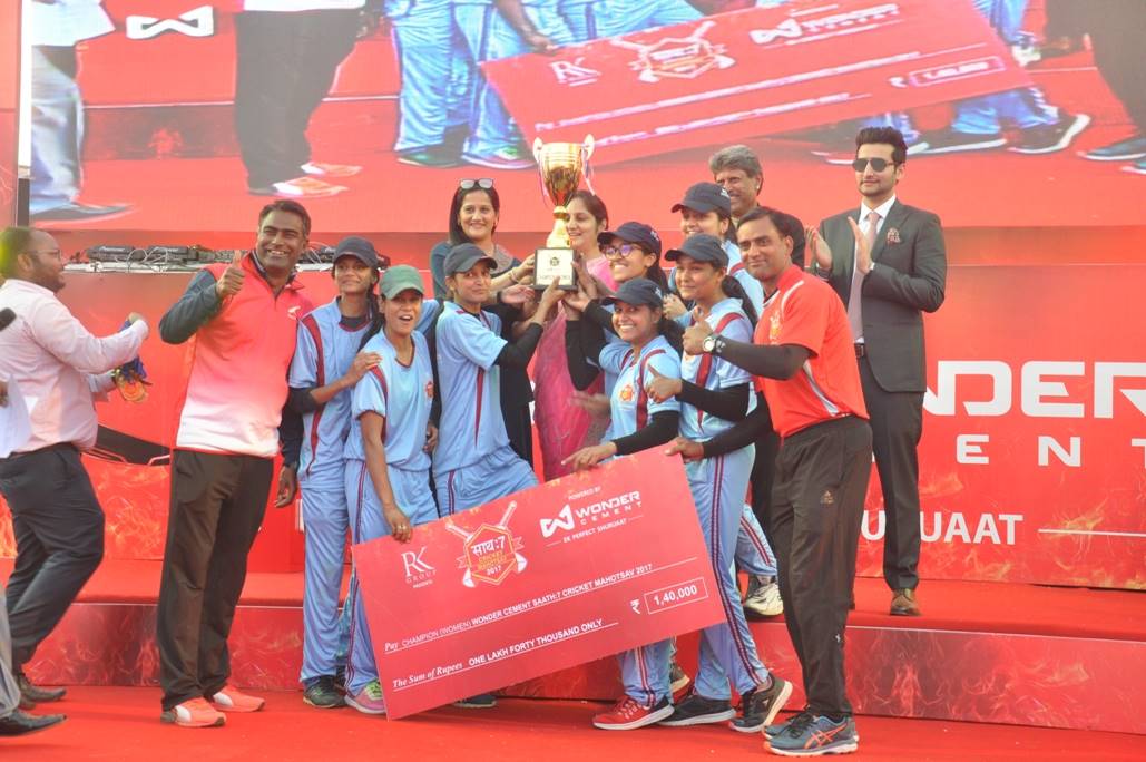 Kapil Dev and Vivek Patni (Director- Wonder cement) presented the Saath7 Champions Trophy to the Champions of the Saath7 finale along with certificates and a cash prize of Rs.3,50,000. The runner-up teams were rewarded with a cash prize of Rs.1, 40,000 and Rs.70,000 respectively. The trophy to the Champions of all-women team matches was awarded along with a cash prize of Rs. 1,40,000. Every participating player in the finals was given cricket gear too.